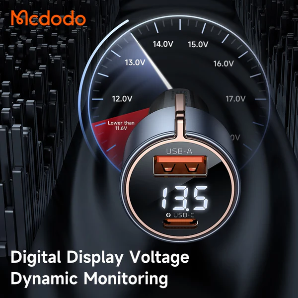• LED Digital Display: It features a smart display that alternates between showing your car battery voltage (to monitor your car’s health) and the current charging power (W).